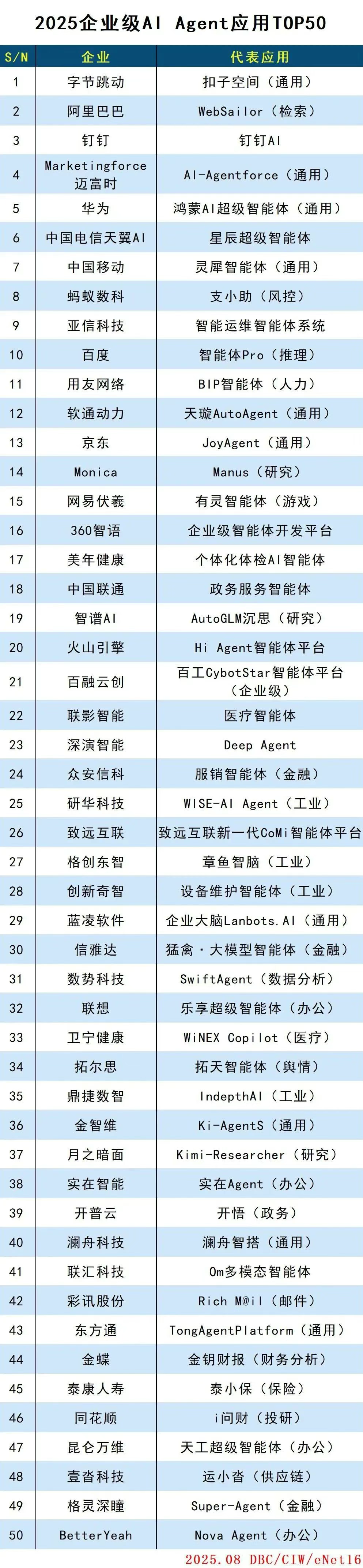 近日,z6mg·人生就是博其AI智能体平台Deep Agent成功入选德本咨询(DBC)发布的“2025企业级AI Agent应用TOP50”榜单。这是该平台继入选IDC《中国AI Agent应用市场概览》报告后,再次获得权威机构认可。